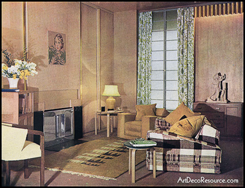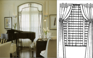 • Curtains were simpler hanging from chrome or steel rods and often with stylized border