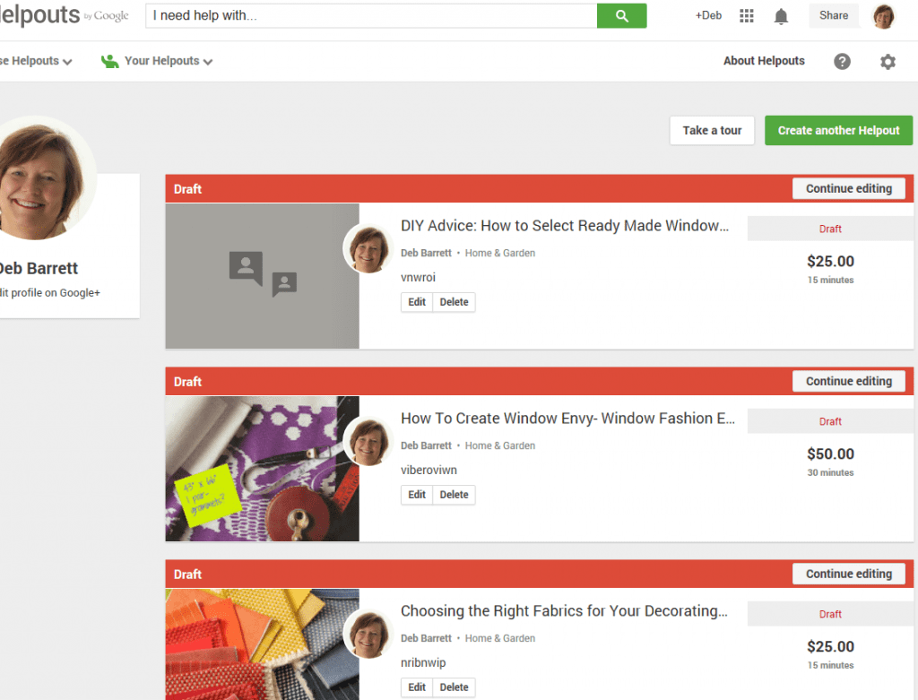 “Helpouts can be especially beneficial for designers or anyone who needs assistance on a home project. Helpouts removes the geographic barriers, since experts are able to share their advice from anywhere. The designer can see the room or area over video, and if the user has the mobile app- ever take them for a walk around! With features like screensharing and file transfer, you can share pictures of ideas and brainstorm on the project easily.”