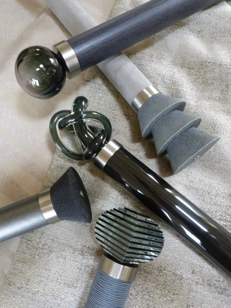 Drapery hardware also gets sleeker and more elegant. Smaller diameters are replacing tired looking overscaled wood poles. Round poles gave way to rail systems and now they are being joined by other geometric forms like octagons Stainless steel and chrome finishes add refinement to the looks. On the horizon- Brass- unlacquered, lacquered, antiqued and warmed up with interesting undertones. Many collections include rods with inner profiles for sliders, plexi poles or transparent mounts, giving them the appearance of floating freely within the room.